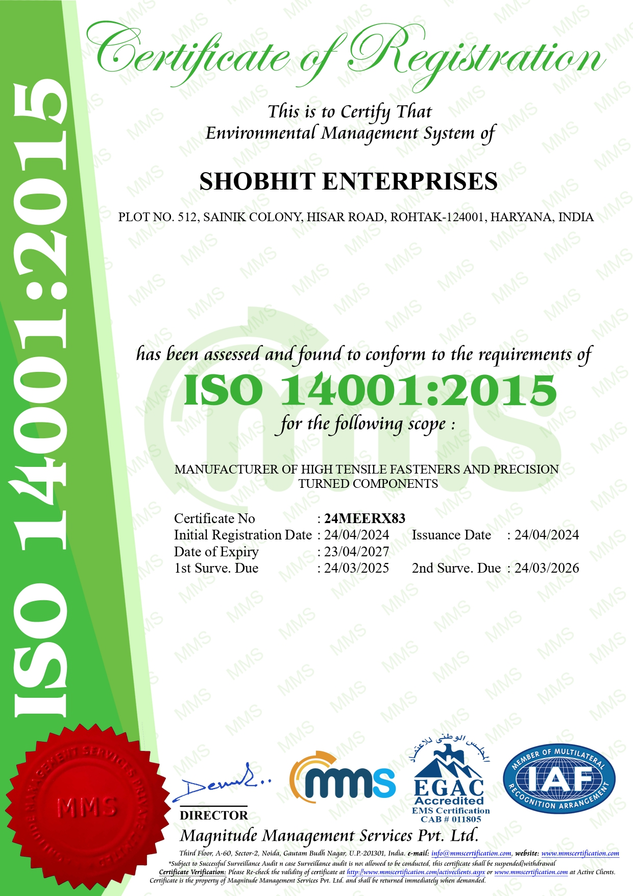 Shobhit Enterprises hold certification for our compliance to some of the most demanding globally-recognized standards: